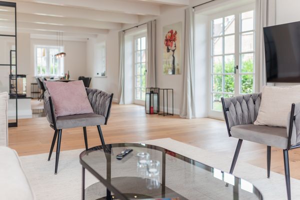 • Sehr großer, offener Wohn- und Essbereich mit viel Tageslicht und direktem Zugang zur Terrasse und zum Garten